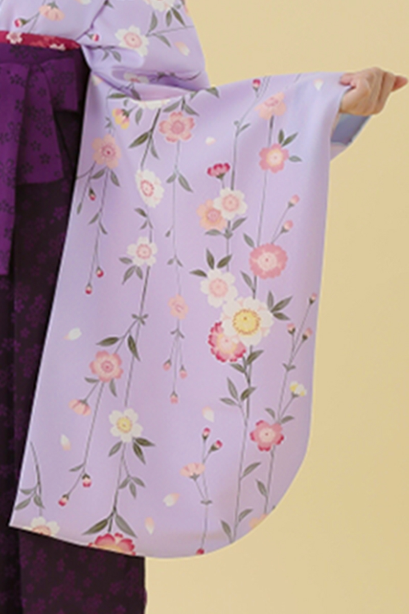 【WEB限定】【二尺振袖&袴セット】 THO-18 ラベンダー花柄+桜地紋柄紫袴