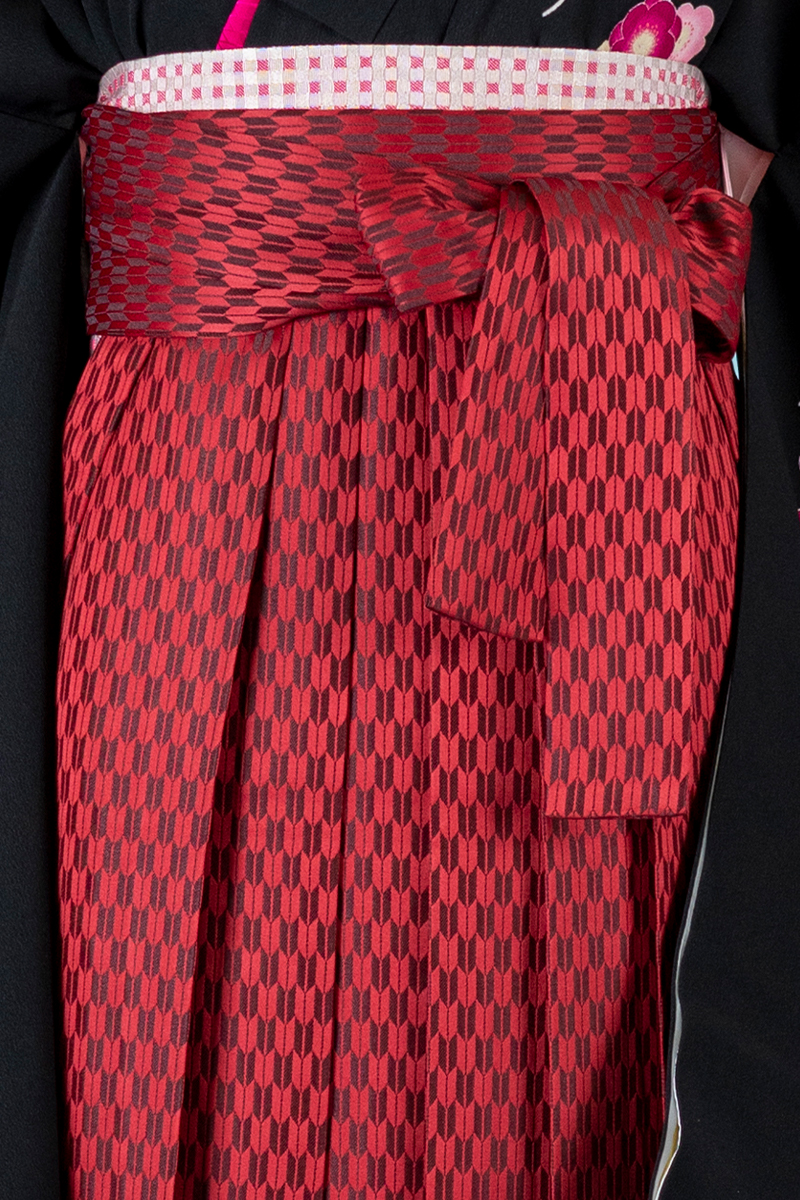 【WEB限定】【二尺振袖&袴セット】 THO-19 桜枝柄 黒+赤格子柄袴