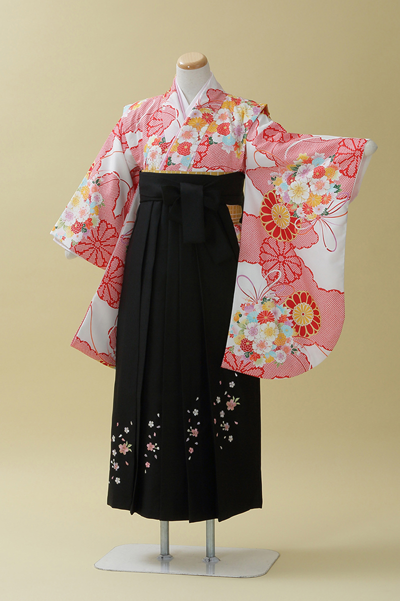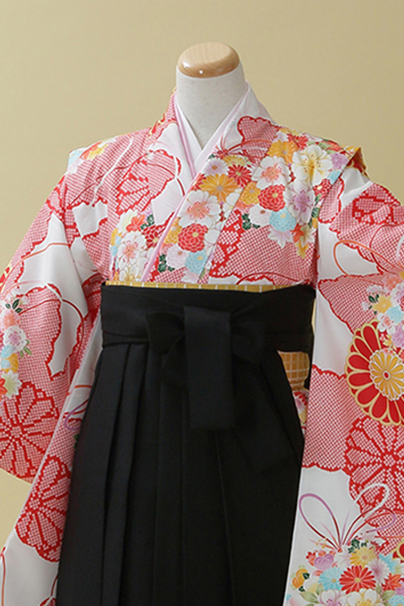 白×赤が晴れの日にふさわしい一枚。清楚スタイルが気になるお嬢様にお勧めの袴スタイルです。