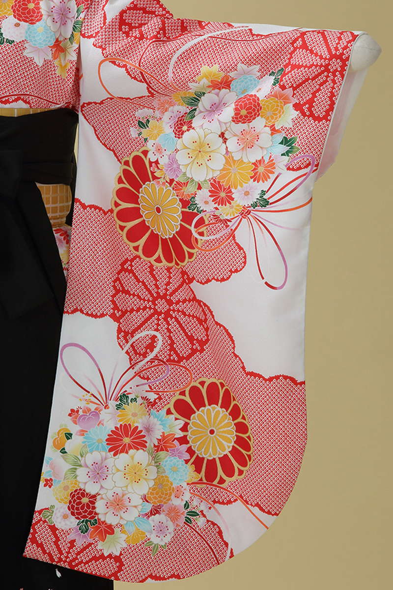 二尺振袖(比翼付)・袴・半巾帯・長襦袢・巾着・草履・着付け小物