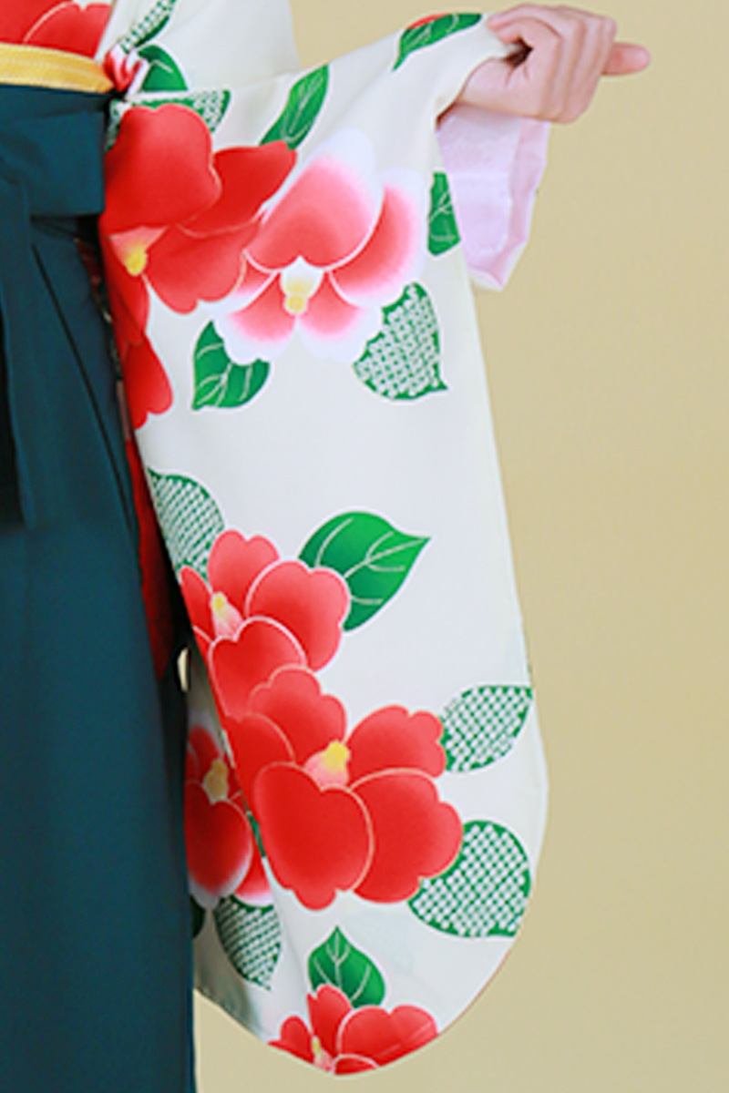 シンプルだけど目立ち度MAXなレトロモダンスタイル。「春を告げる聖なる木」として縁起の良い椿が私らしさを際立てる。卒業式に注目度間違いなしの一枚です。※刺繍衿あり(モデル着用写真の刺繍衿と異なっておりますため、ご注意ください。)