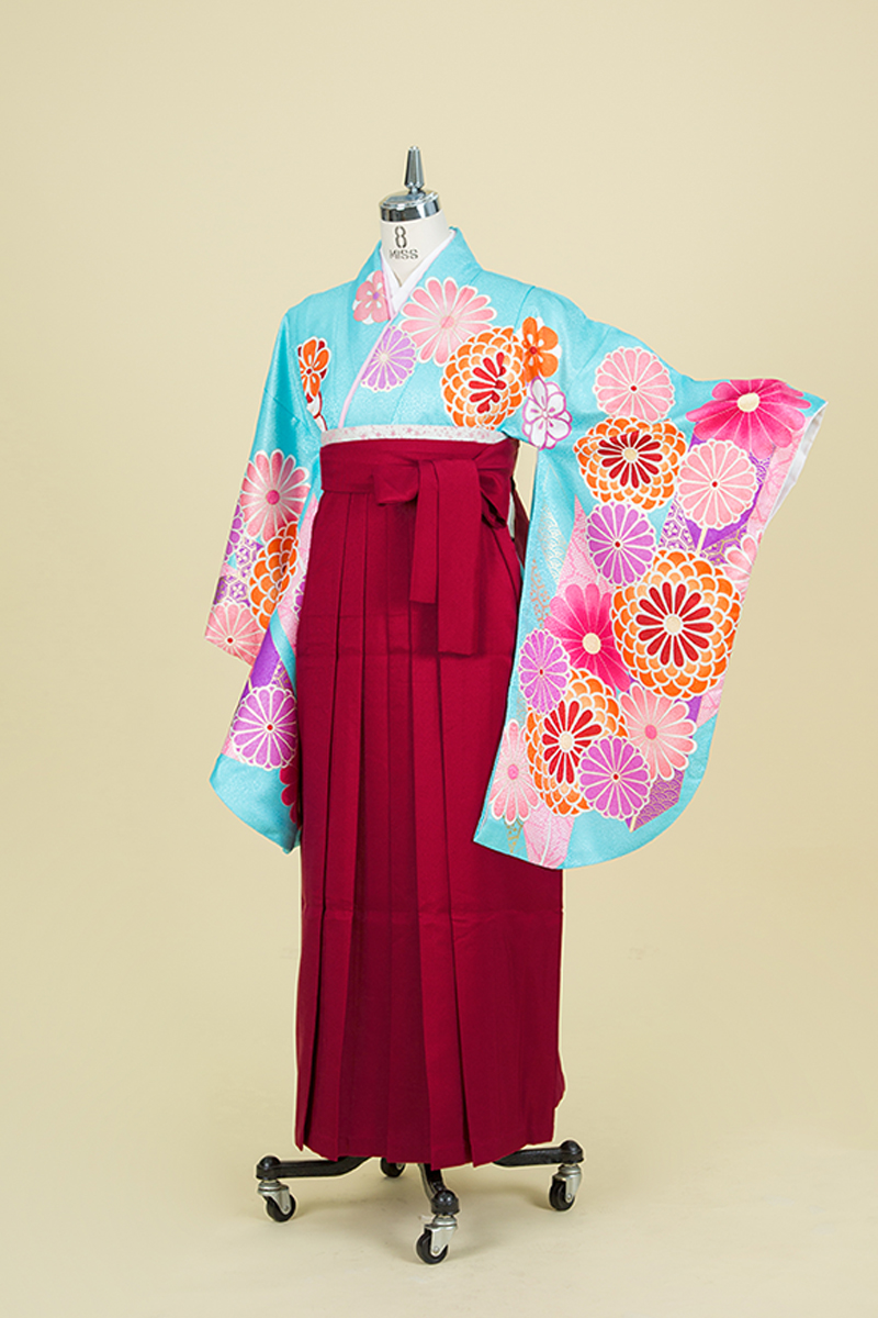 二尺振袖(比翼付)・袴・半巾帯・長襦袢・巾着・草履・着付け小物