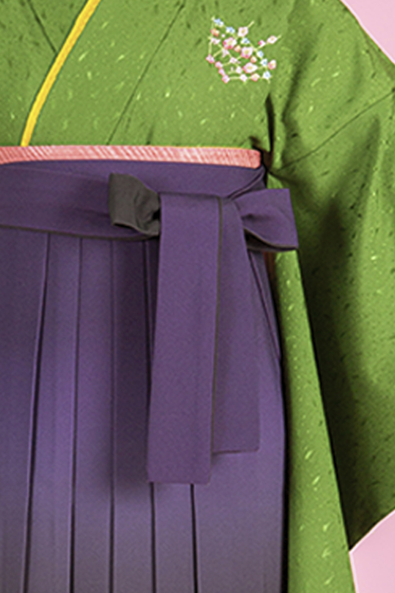 落ち着いた和テイストのとってもお得な商品です。上品な抹茶色のため、先生袴にもおススメです。