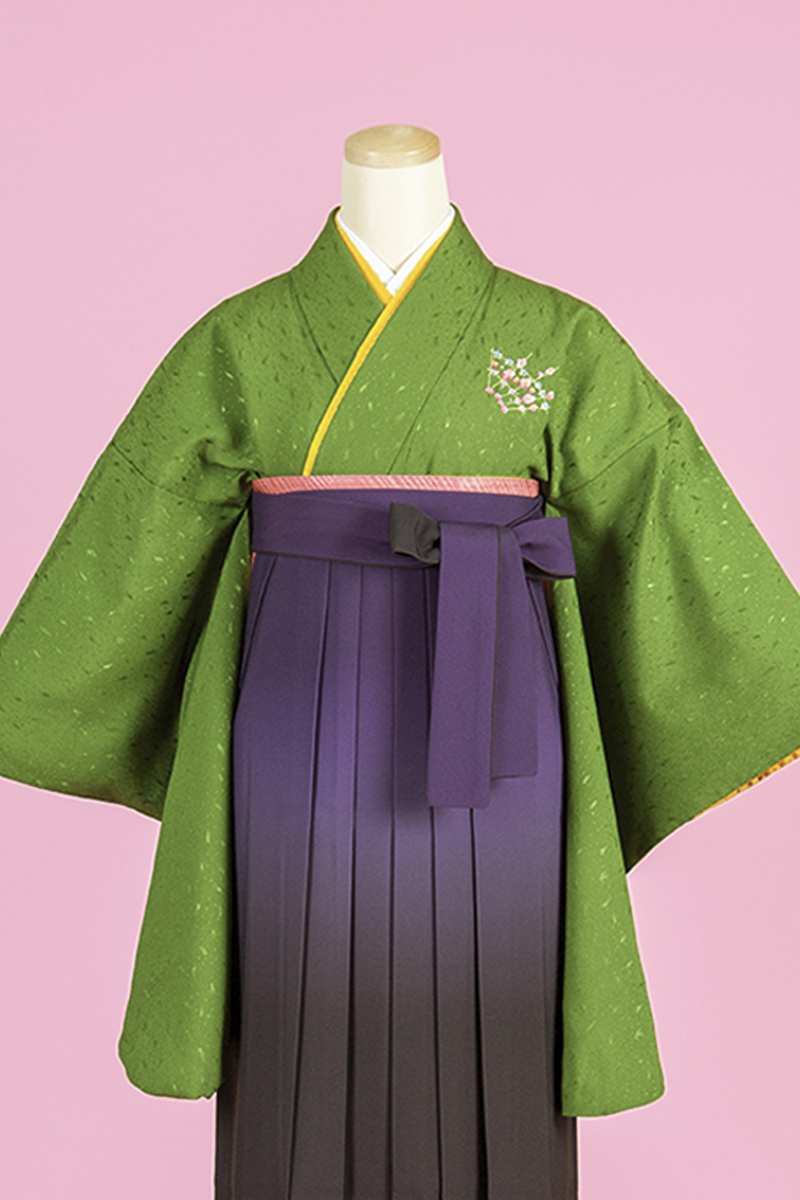 【WEB限定】 TH-6 (二尺振袖&袴セット)花地紋柄 グリーン+紫ぼかし袴