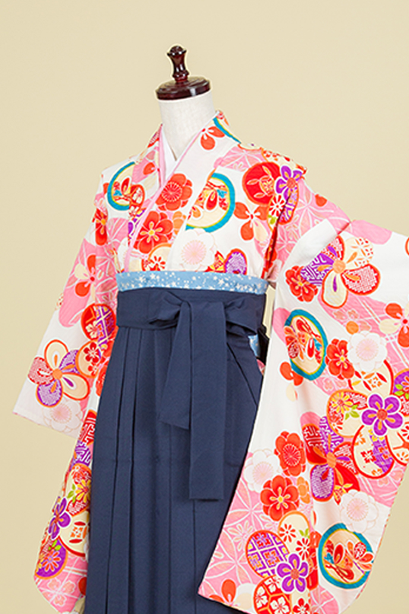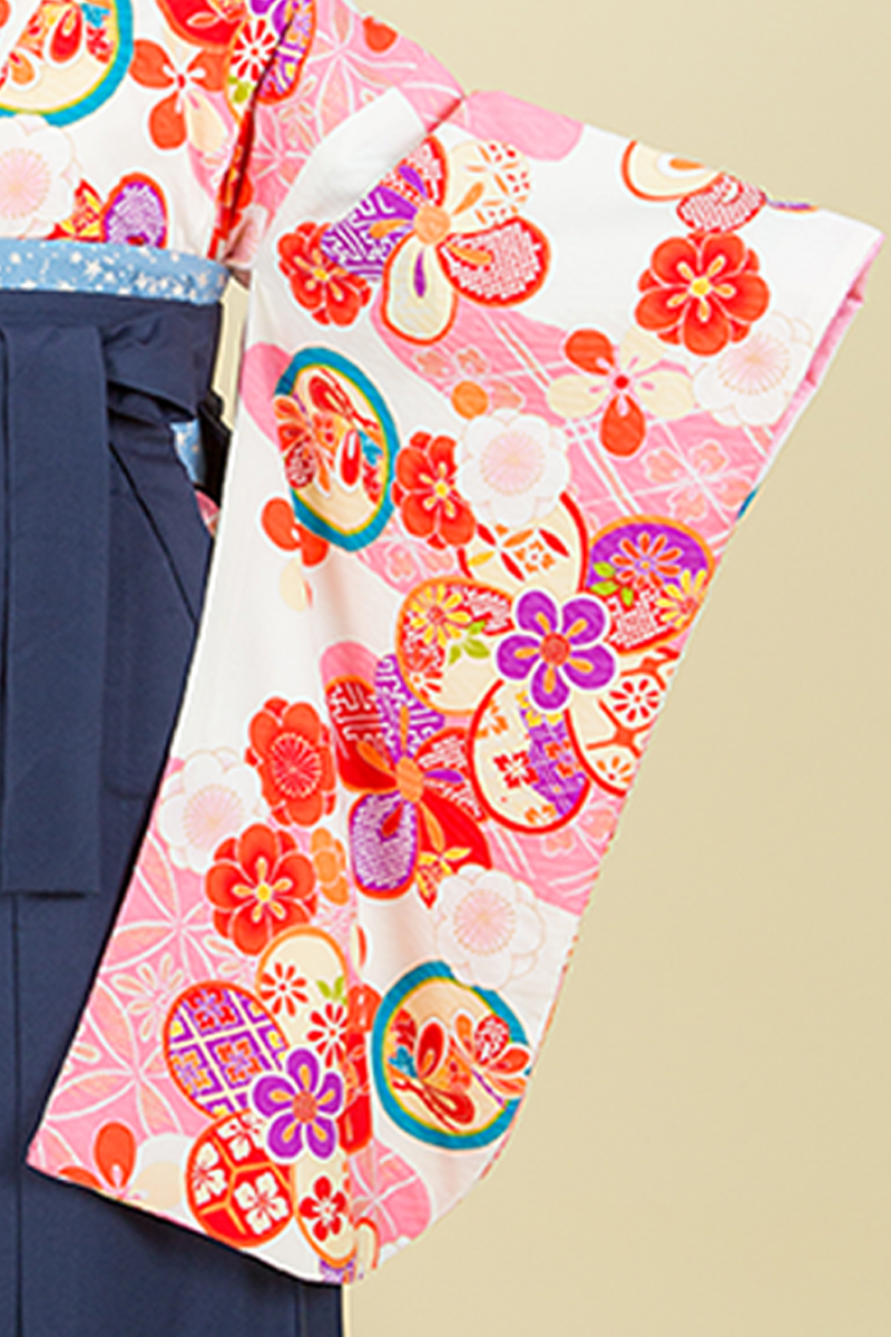 二尺振袖(比翼付)・袴・半巾帯・長襦袢・巾着・草履・着付け小物