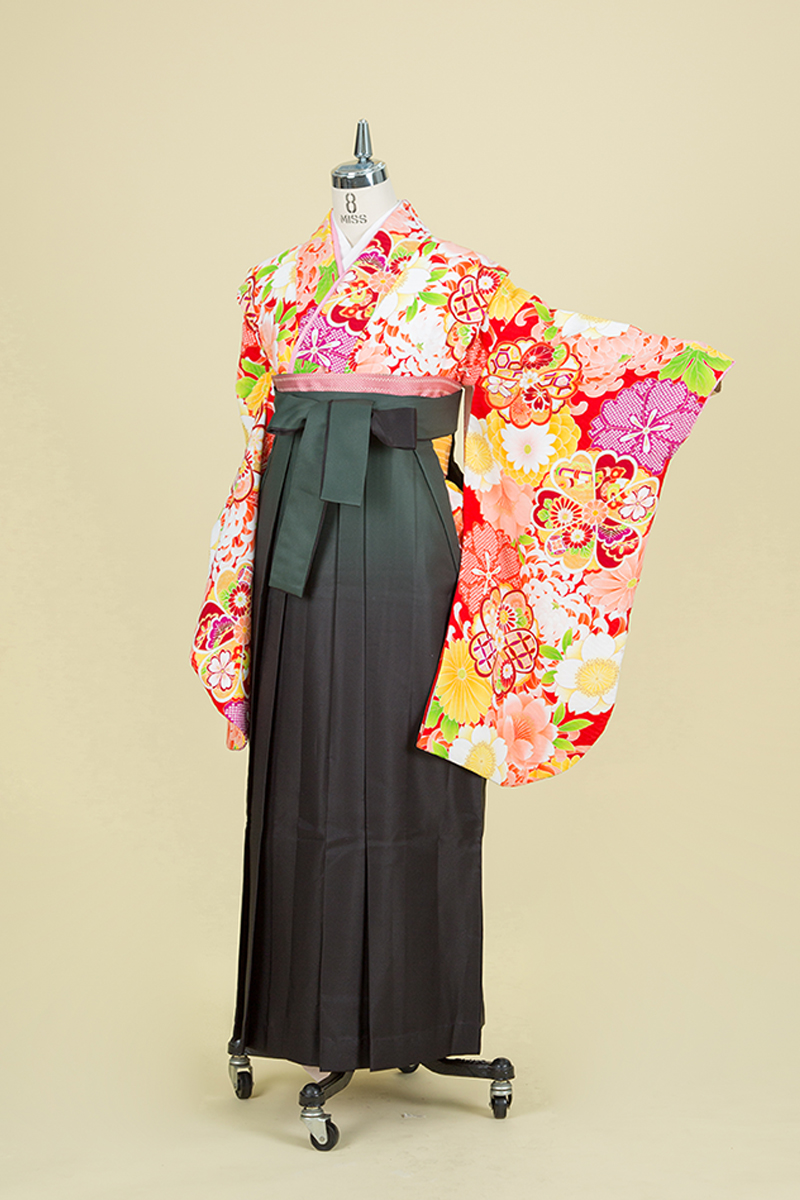 二尺振袖(比翼付)・袴・半巾帯・長襦袢・巾着・草履・着付け小物