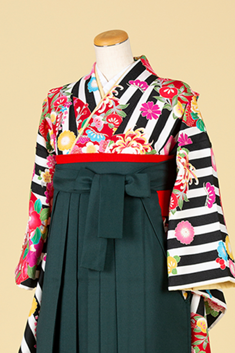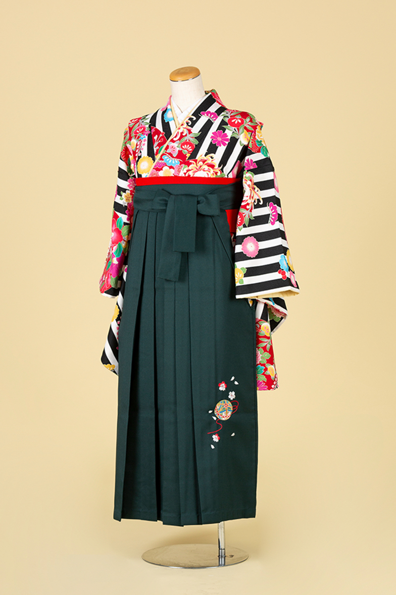 二尺振袖(比翼付)・袴・半巾帯・長襦袢・巾着・草履・着付け小物