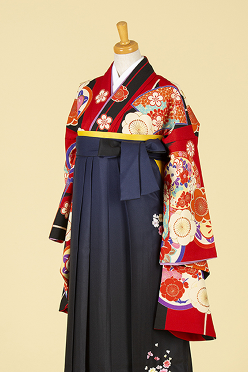 【WEB限定】【二尺振袖&袴セット】TBH-8 赤古典柄+刺繍黒袴