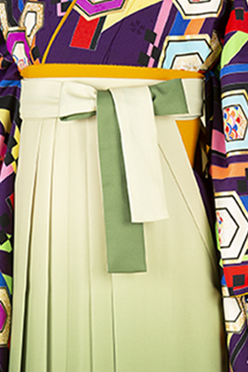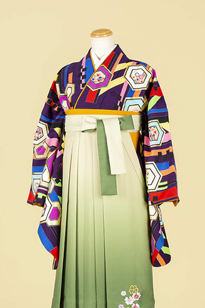 【WEB限定】【二尺振袖&袴セット】TBH-12 亀甲文様紫+緑刺繍袴