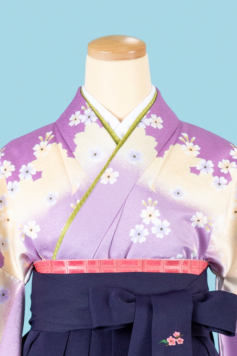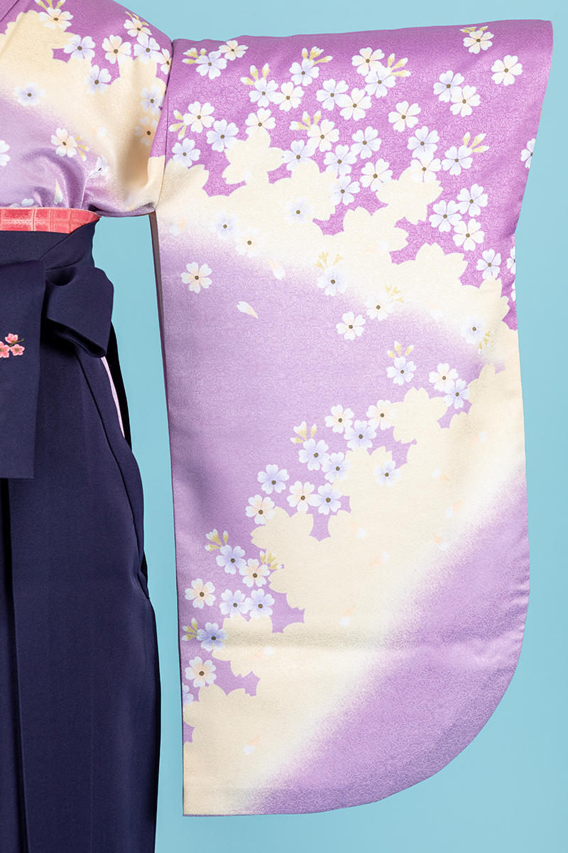 【WEB限定】【二尺振袖&袴セット】TH-11 桜柄 紫+紺花刺繍袴