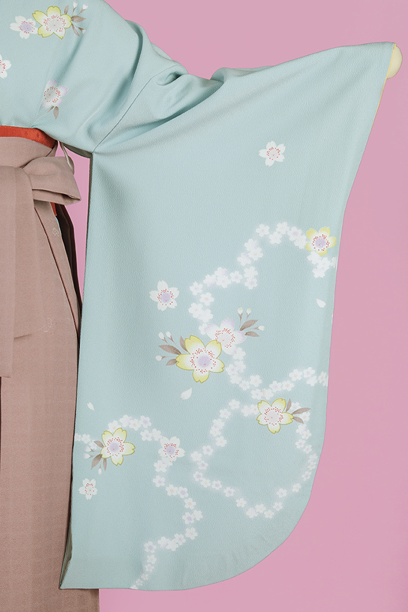 【WEB限定】【二尺振袖&袴セット】TH-14 ブーケ 水色+ピンク格子柄袴