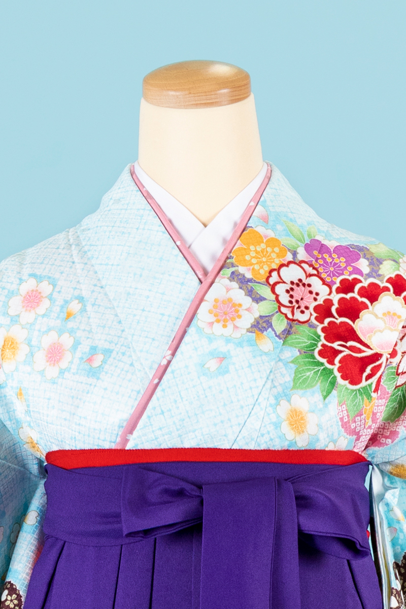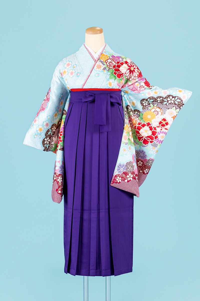 二尺振袖(比翼付)・袴・半巾帯・長襦袢・巾着・草履・着付け小物
