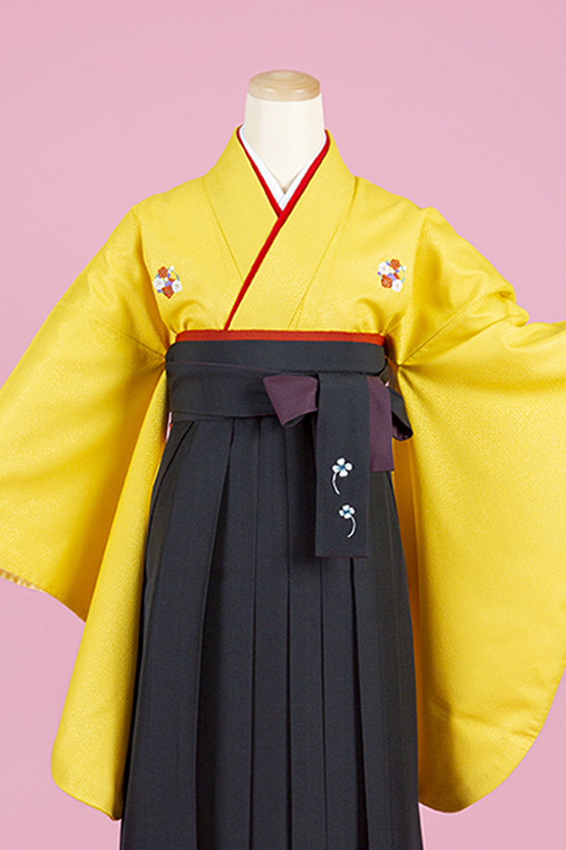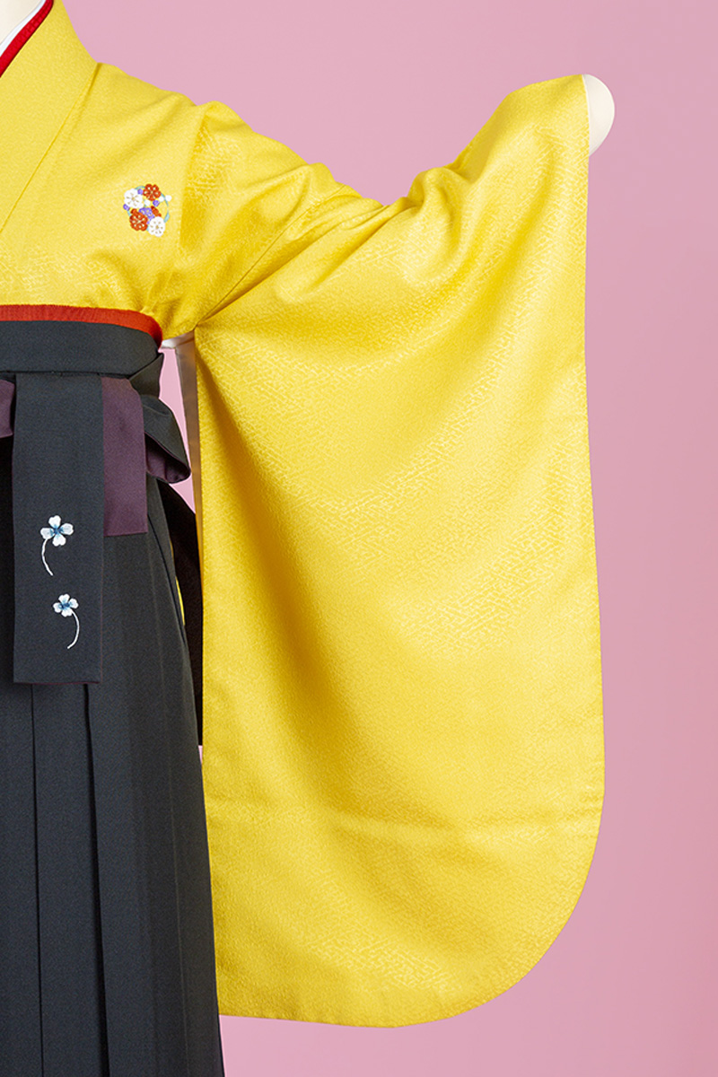 【WEB限定】【二尺振袖&袴セット】TH-15 ワンポイント柄 黄色+黒無地袴