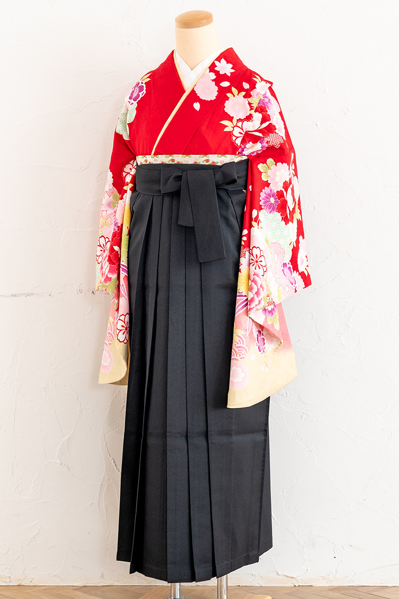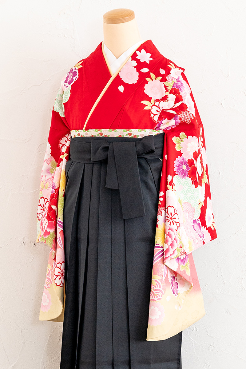 赤の袴は王道スタイル。晴れの日は正統派で迎えたい、そんなあなたにピッタリの一枚です。