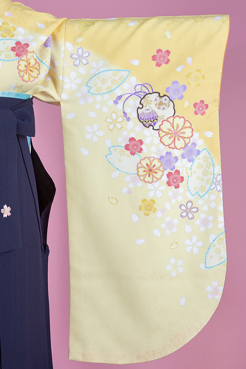 【WEB限定】【二尺振袖&袴セット】 TH-21 クリーム系黄色+ワンポイント紫袴