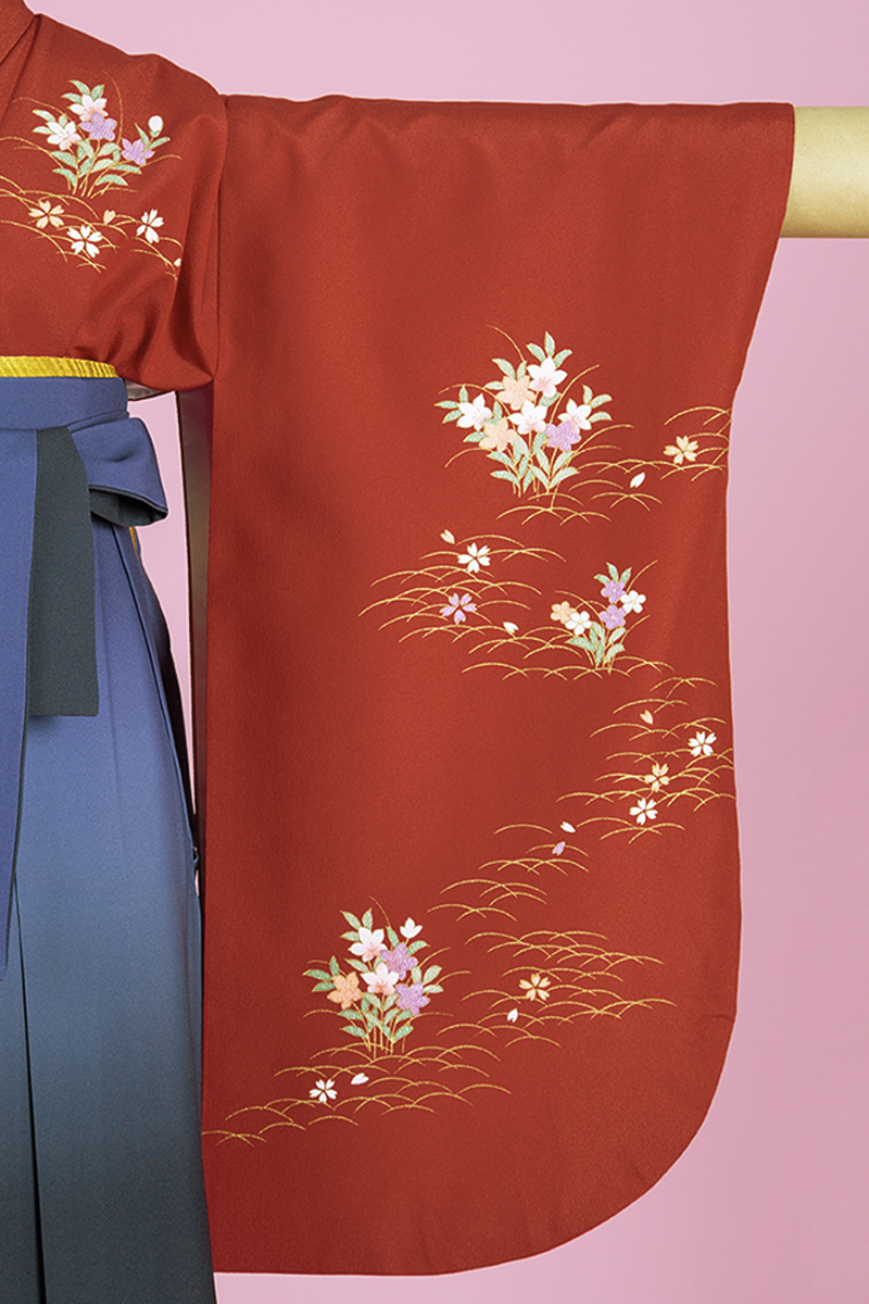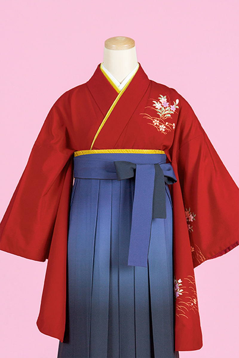【WEB限定】 TH-2 ワンポイント柄(二尺振袖&袴セット) 赤+紺ぼかし袴