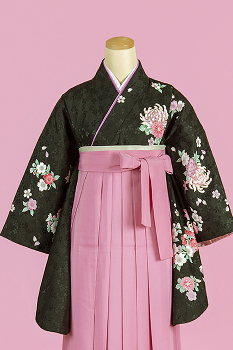 【WEB限定】【二尺振袖&袴セット】 TH-27 総づくし桜地紋柄 黒+ピンク無地袴