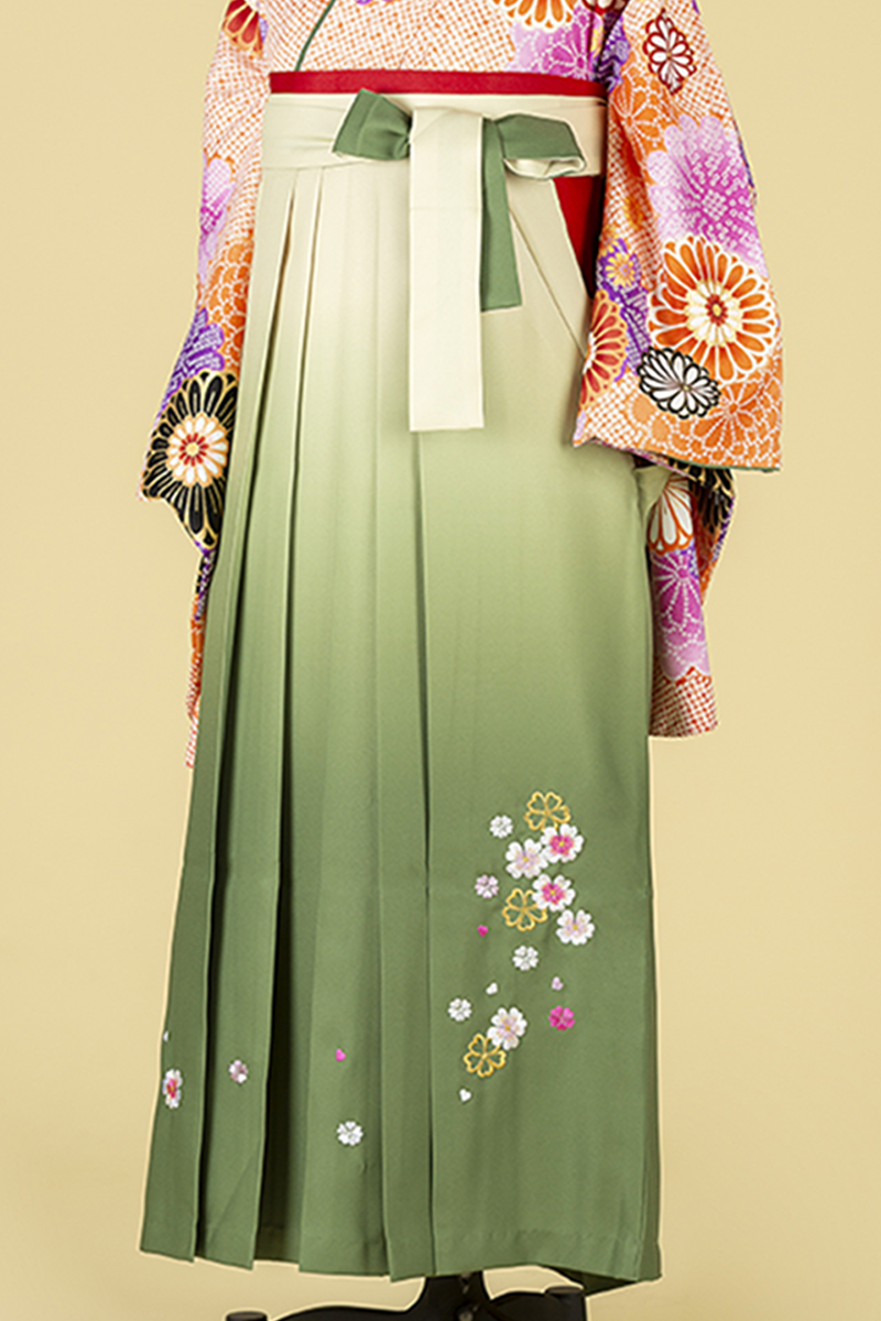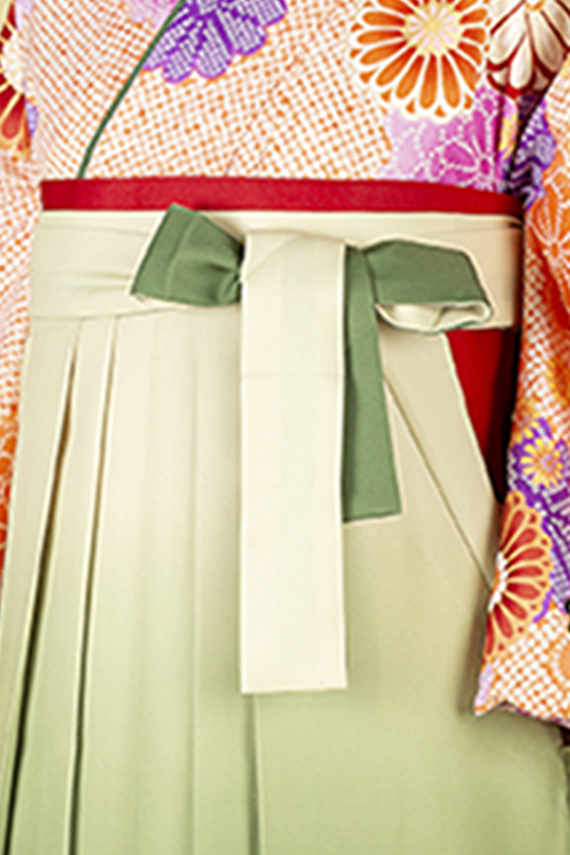 【WEB限定】【二尺振袖&袴セット】 TBH-2 橙鹿の子+刺繍緑袴