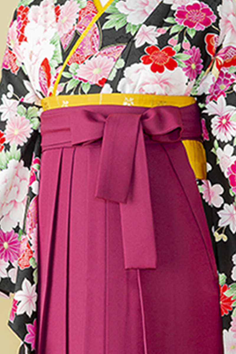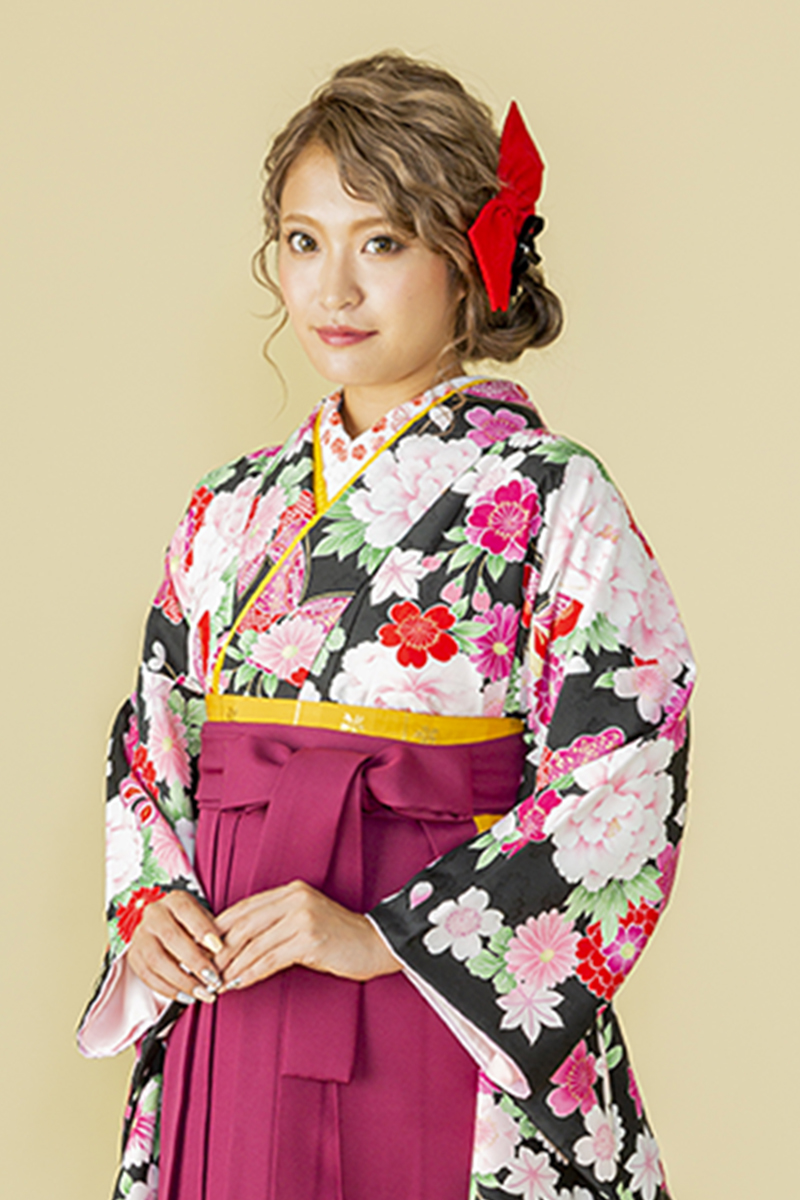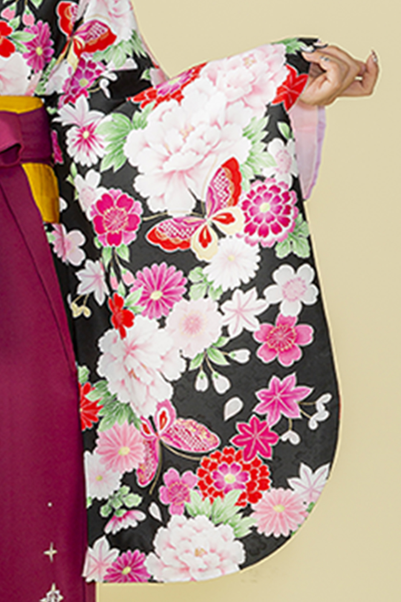 【WEB限定】【二尺振袖&袴セット】 THO-10 花総柄 黒+エンジ刺繍袴