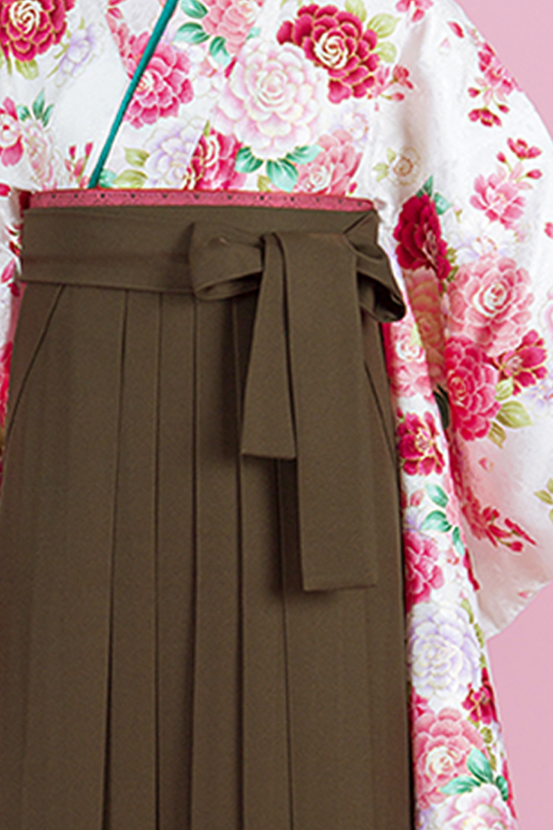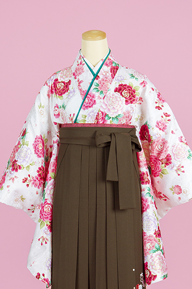 【WEB限定】【二尺振袖&袴セット】 THO-13 花総柄 白+ワンポイントブラウン袴